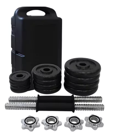 Kit Pesas Mancuernas 20 Kg 40 Lb Gimnasio Port til EstucheLleg el momento de poner a trabajar esos m sculos con ste espectacular kit de mancuernas con agarre antideslizante viene con un pr ctico malet n para que puedas transportarlo donde lo desees Utiliza este espectacular set de mancuernas de 20 Kilogramos de peso ideal para tonificaci n muscular fortalecimiento articular o recuperaci n y fisioterapia Compuesto por 12 discos en acero color negro 2 barras con agarre antideslizante 4 seguros de rosca mariposa Un practico malet n para transportarlo a cualquier lugar Kit de mancuernas y pesas importadas con estuche que incluye 4 discos en hierro fundido de 0 5 Kg cada uno 4 discos en hierro fundido de 1 25 Kg cada uno 4 discos en hierro fundido de 2 5 Kg cada uno 4 collares roscados en hierro fundido 2 mancuernas cromadas de 35 cm con agarre antideslizante 1 Estuche de transporte tipo maleta con agarre