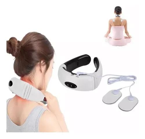 Dormir en una posici n incomoda el estr s o un mal movimiento de la cabeza hacen que el cuello se tensione afectando la productividad del d a a d a Por esta y muchas m s razones te traemos este cuello masajeador con tecnolog a 3D que se acomodar a ti y tus necesidades de manera c moda Nos inspiramos en las t cnicas tradicionales de masaje en China ya que los electro impulsos son efectivos para relajar y mejorar la circulaci n de sangre permitiendo que los espasmo de los m sculos se desvanezcas y den paso a la tranquilidad que brinda los efectos magn ticos tambi n podr s conectar los dos parches de electro estimulaci n y colocarlos en tu espalda para un mayor efecto Adem s pensando en ti su tama o y dise o portable e inal mbrico es ideal para llevarlo y usarlo con confianza en casi cualquier lugar de manera discreta y sin cables de conexi n a la corriente El Neck Massager adem s de ser peque o y f cil de usar cuenta con tres modalidades distintas calor infrarrojo ultrasonido terap utico y terapia de masaje con estimulaci n de electro frecuenc